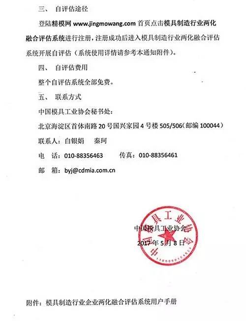 转发“关于开展模具行业两化融合自评估工作的通知”