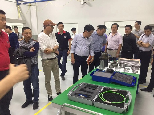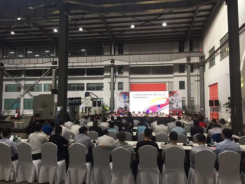 最后进行了高端制模设备现场演示议程,由宁波天瑞精工机械有限公司黄俊总经理致词、公司技术负责人作简要介绍,并邀请与会嘉宾参观了车间,观看了五轴加工中心现场演示。
