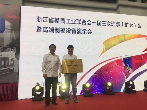 台州科技职业学院机电与模具工程学院院长何昌德领取理事单位铜牌