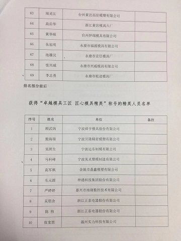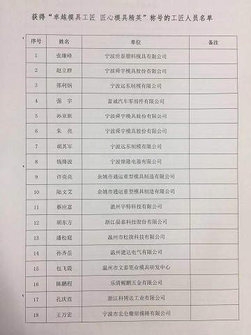 关于表彰“卓越模具工匠 匠心模具精英”的通知