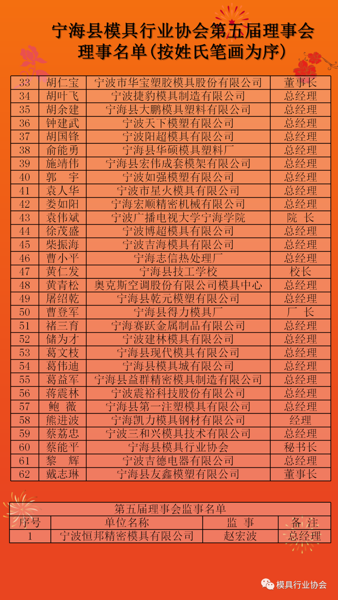 模具作为我县传统优势产业之一,去年实现工业总产值110亿元,占全县规上工业总产值的1/10,有力发挥了工业经济“放大器”作用。过去5年,在一批务实有为、充满干劲的企业家带领下,我县取得了“国家外贸转型升级宁海模具基地”、省内首个“出口模具质量安全示范区”等荣誉称号;方永杰、鲍薇、蒋震林三位企业家还获评匠心模具精英。模具协会总会员家数达到180家,成为全县工业行业协会之首,举办了187次周末晚间沙龙交流活动,1565人次参与了互动交流,起到了信息互通、互帮互助、抱团发展等作用。